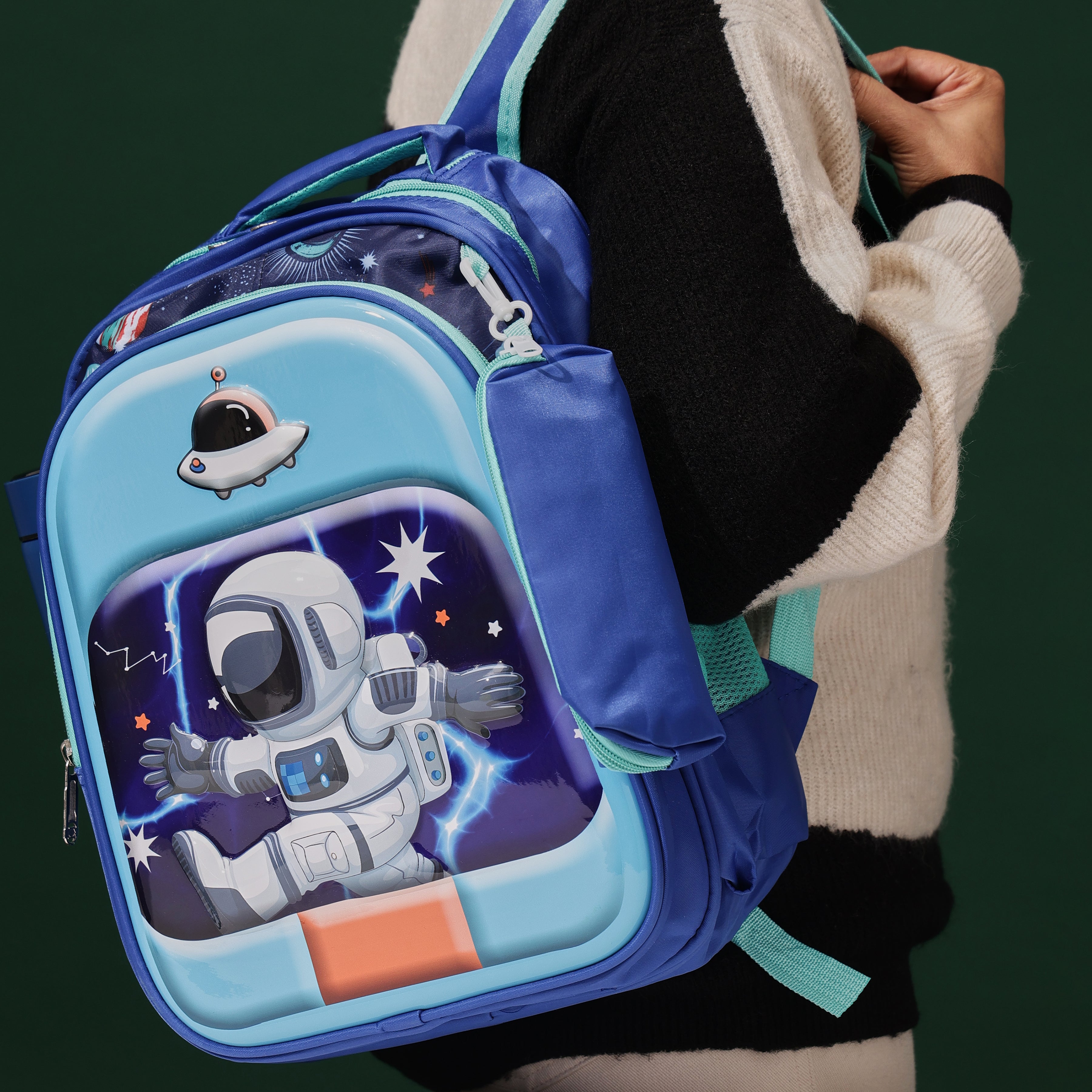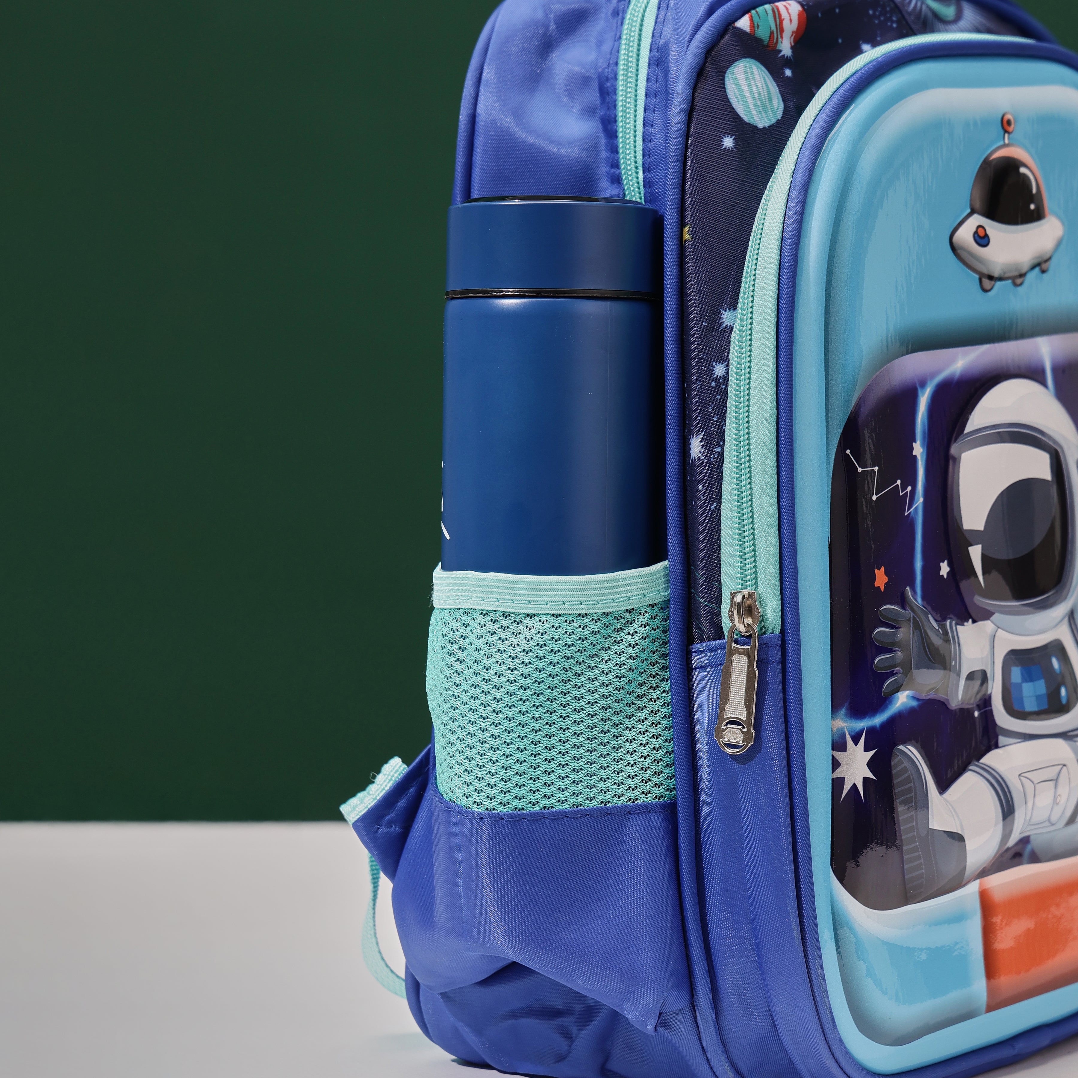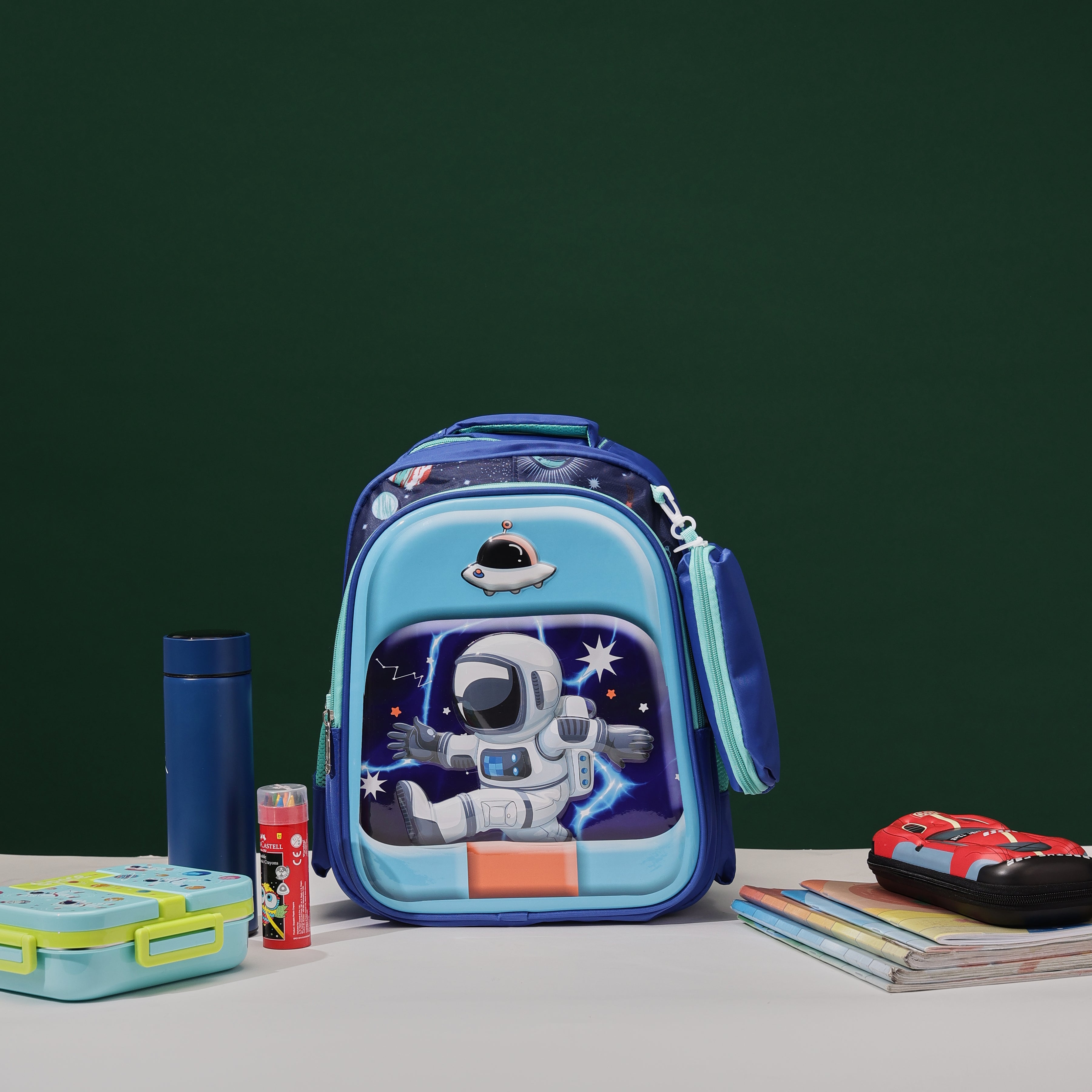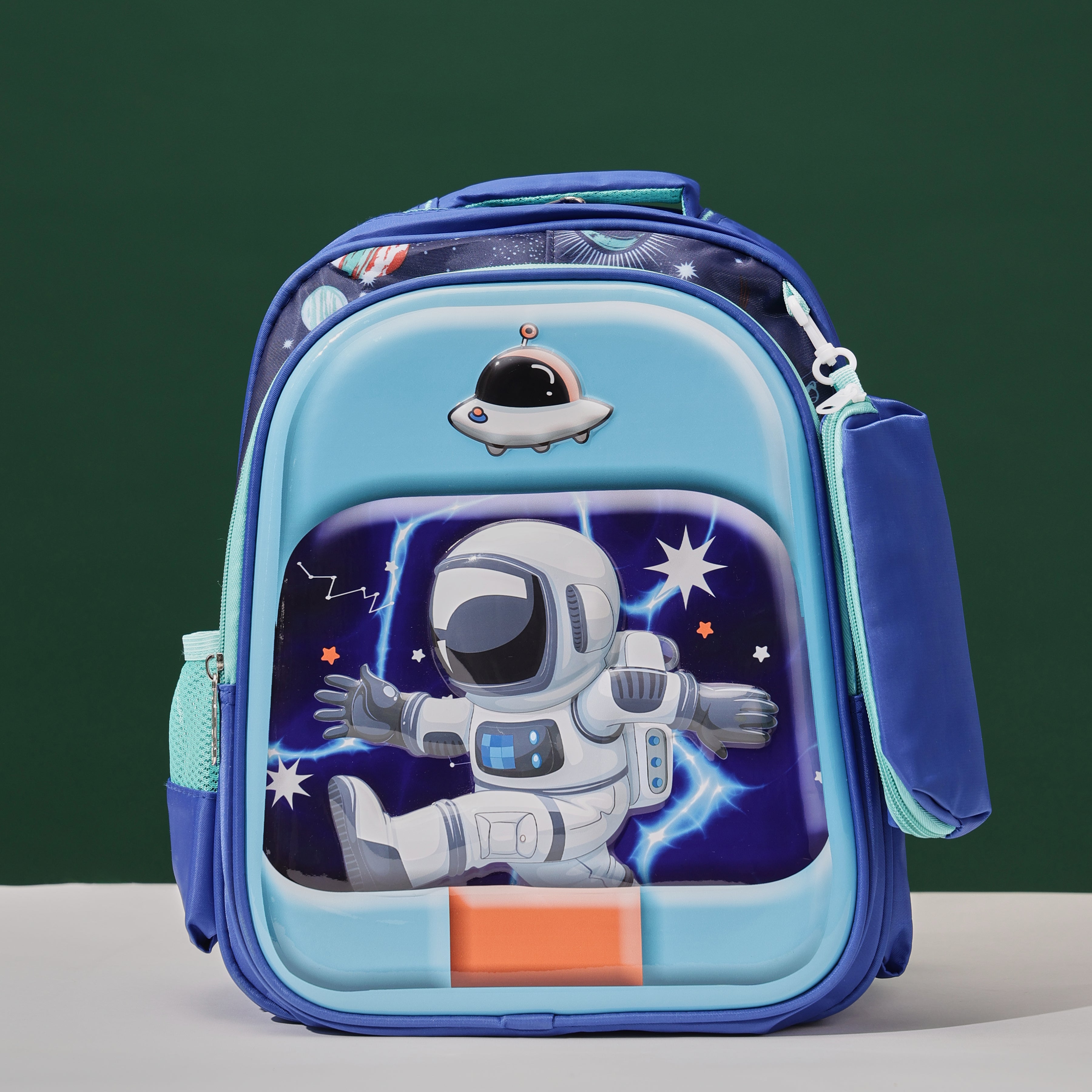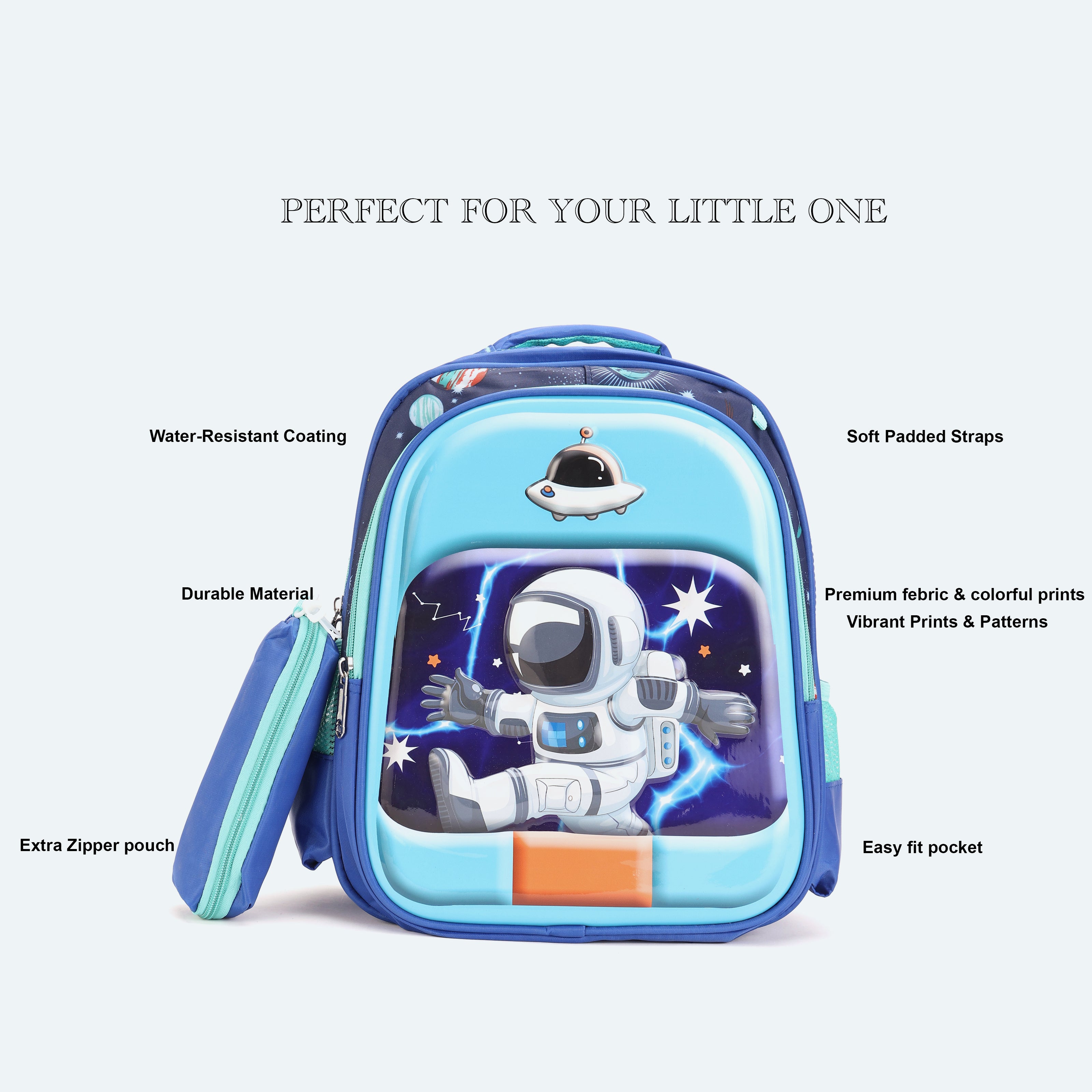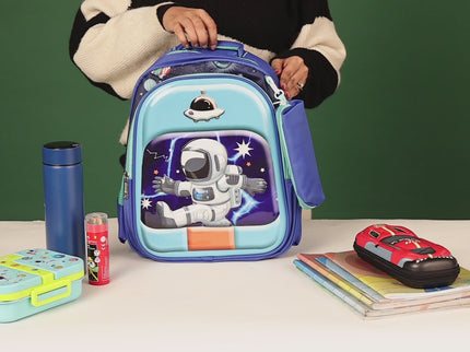 Space Astronaut 3D School Bag with cartoon Design|KIDS BAG| Water Resistant |14 Inch|Boys&Girls School Bag, Blue Color
